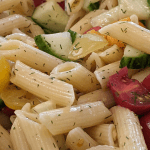 This Pasta Salad is one that we regularly take with us when we are going to someone’s house. It’s also highly requested at my church. It’s light and refreshing and oh so tasty! This is one you can almost always find in our fridge during the summer months.