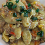 This recipe is really easy but it does take a little bit of babysitting. You want to be sure the noodles don’t overcook and get too gummy in texture. We found that right around 2 hours on low was the perfect amount of time for us but you’ll want to watch yours!